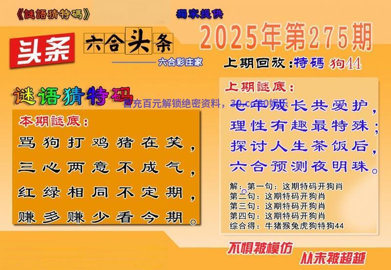 275期:稳赚七肖【猴羊鸡蛇兔马牛】开:鸡45对 |